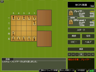 CPU戦&対人戦が楽しめる「5五将棋」プレイページ。